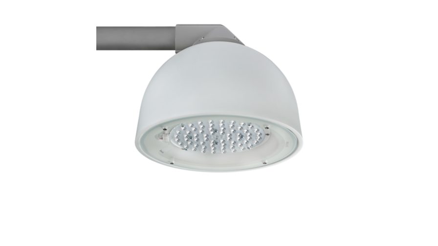 Urban road & street light, Polyeten, Hvit, Sidemontering for diameter 48 mm, Strømforsyningsenhet med DynaDimmer og konstant lyseffekt (integrert), Konstant lyseffekt, 3804 lm, 31.5 W, 100 lm/W, 3000 K, (0.4339, 0.4032) SDCM <5, CRI80, Metronomis, bredstrålet, IP66 | Beskyttet mot støvgjennomtrengning, spylesikker, IK08 | 5 J sikret mot hærverk, Sikkerhetsklasse II, Overspenningsvernnivå inntil 6 kV differensialmodus og 6 kV fellesmodus, Kabel, 10 m uten plugg